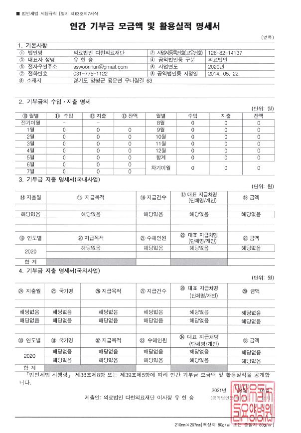 2020년 연간 기부 내역